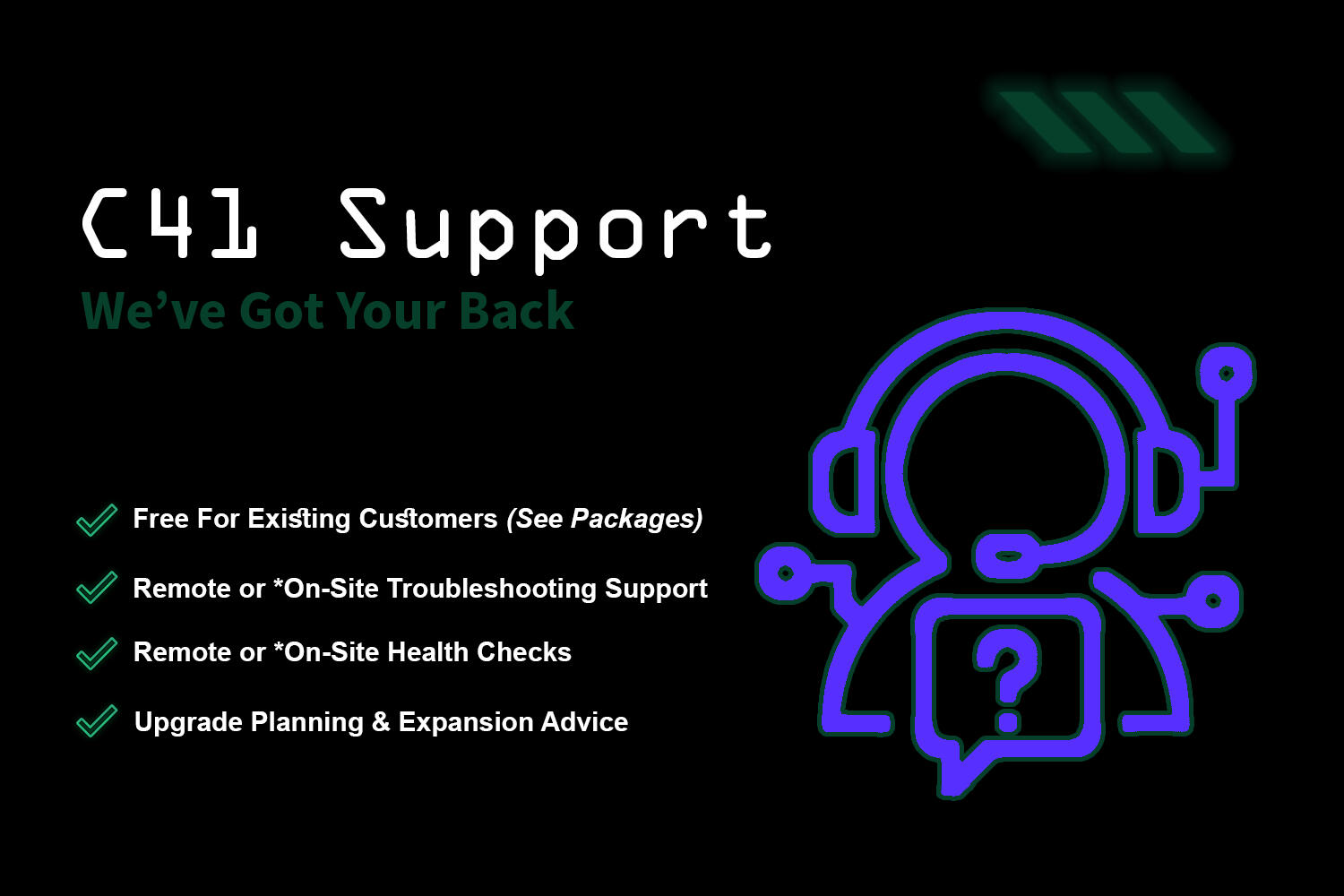 This is our flexible support tier — designed for ongoing maintenance, troubleshooting, or tweaks post-installation. Free for all C41 customers within their included support window, or available at $30/hour beyond that.